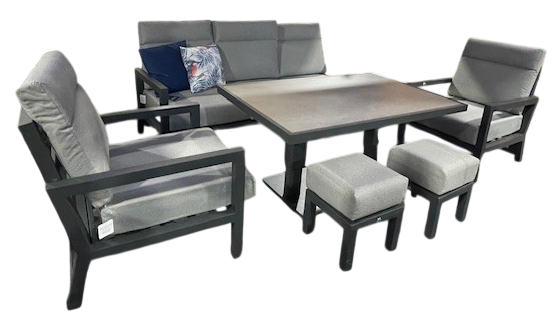 The Alicante furniture combines contemporary design with everyday comfort, making it an elegant centrepiece for any outdoor living space. Crafted with robust powder coated aluminium in a sleek charcoal grey finish; these sets offer a clean, modern aesthetic while ensuring durability and weather resistance. The generously proportioned seating is complemented by deep, supportive cushions upholstered in soft, shower-proof fabric, creating a relaxed yet refined look that suits patios, terraces and garden rooms alike.